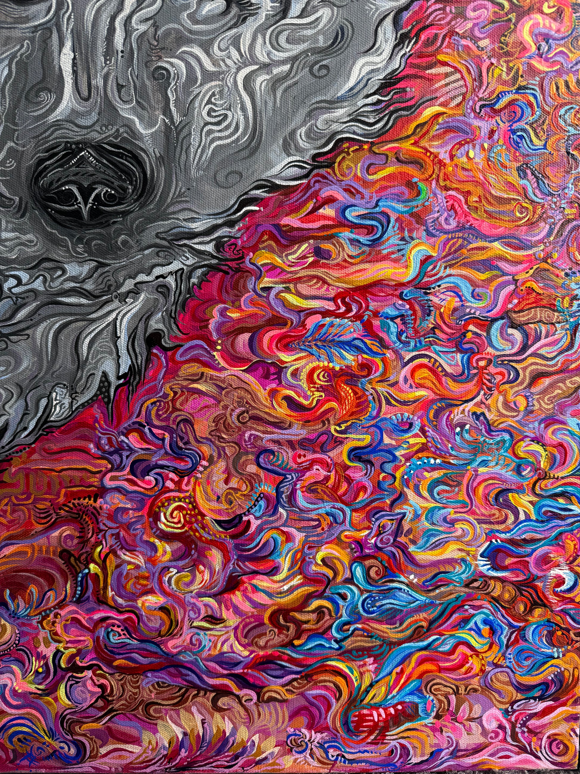 Painting the edges is my way of reminding us that expansion happens when we move past the frame, past the limits of what we think we know. The edges reflect our own process of meeting ourselves beyond comfort zones, in the places where growth, change, and possibility live.