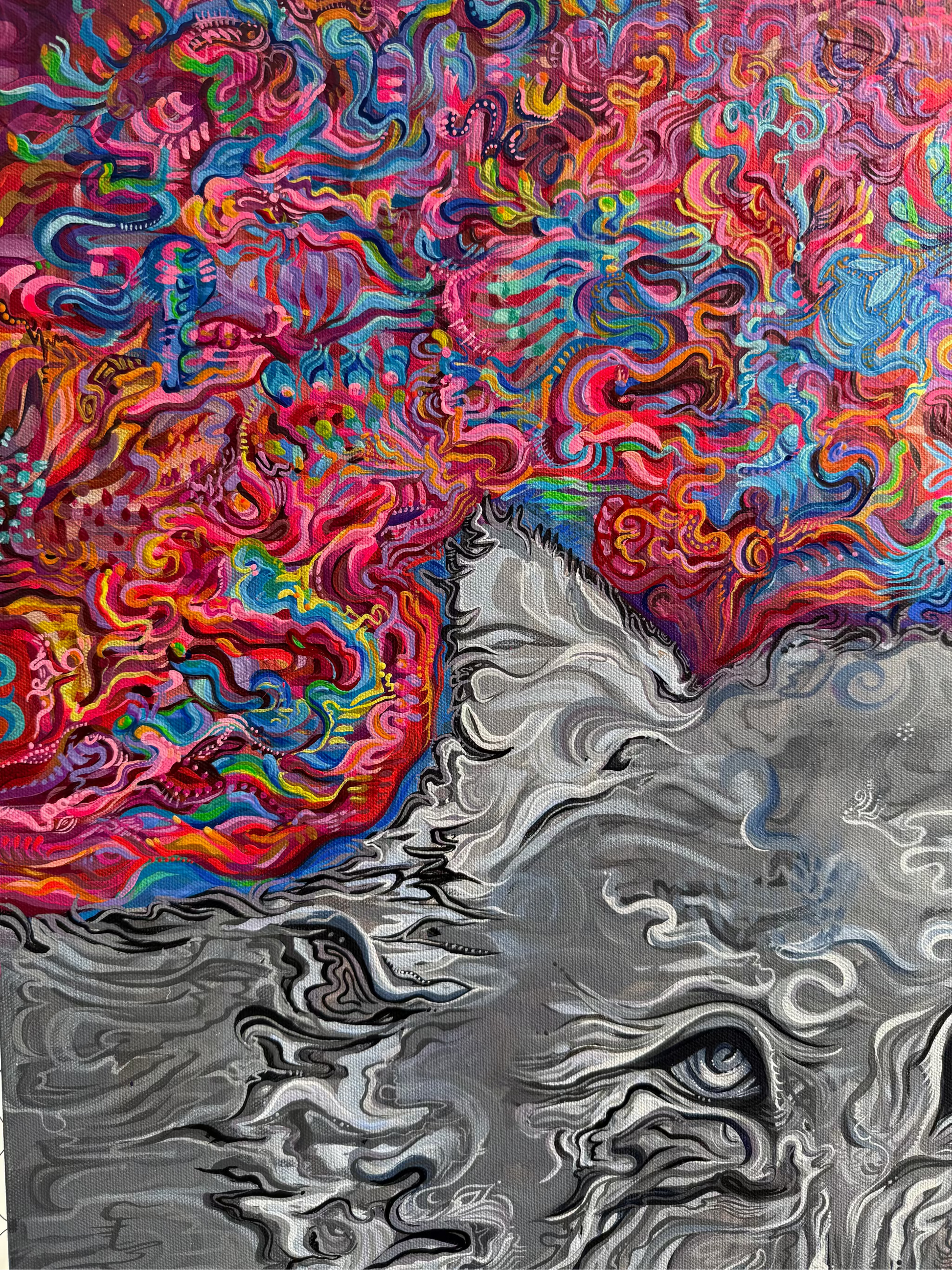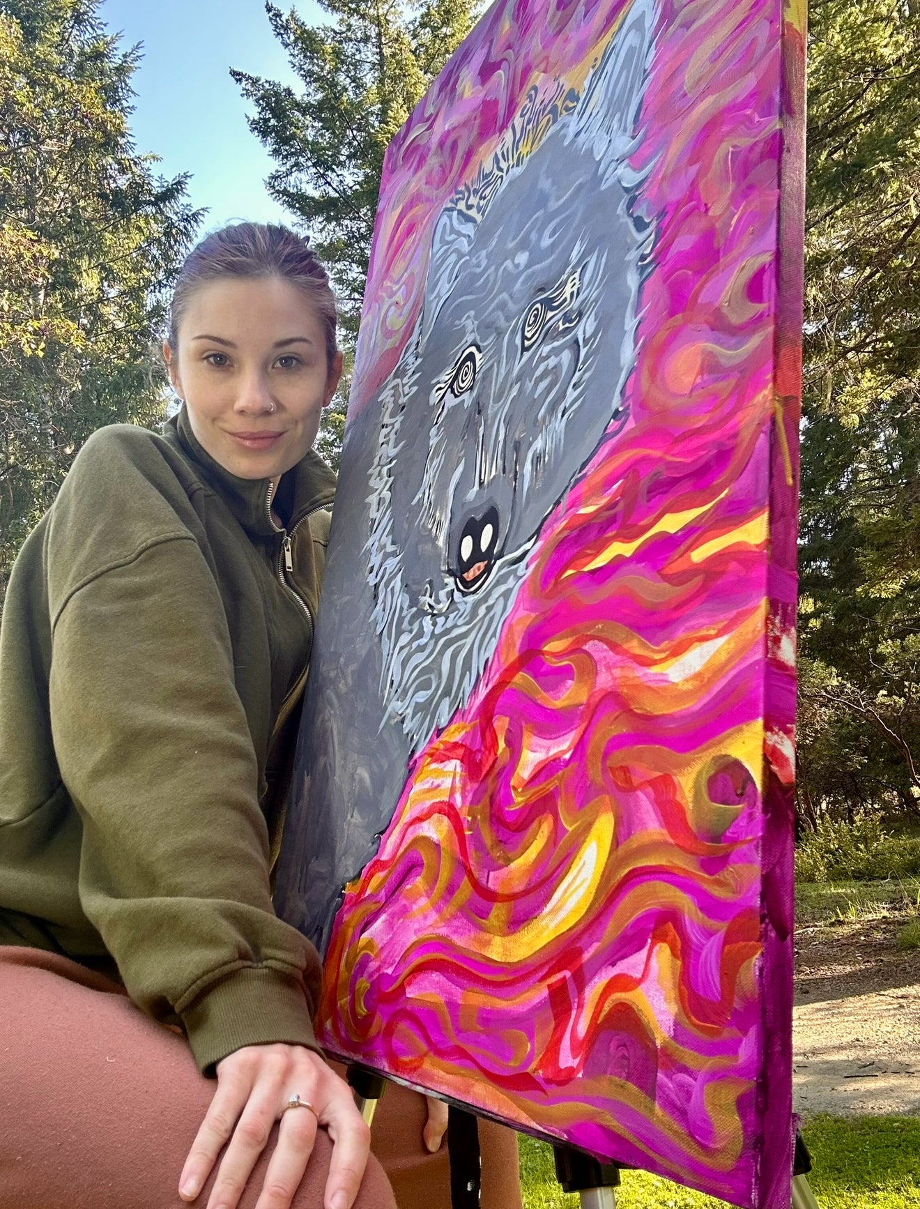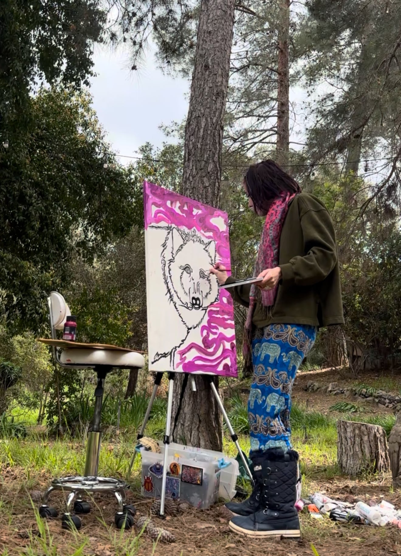 One of the blessings I would receive just weeks after the turkey attack was an invitation to live paint at a Yaima show when I landed in Seattle. Their music carried me through pivotal moments of my awakening journey and I was so honored. Yaima’s music does what the wolf does, it guides us through the unknown, offering courage, beauty, and belonging in the mystery. To live paint alongside them felt like the embodiment of a prayer answered, a merging of art and sound that had been shaping me from within for years.
