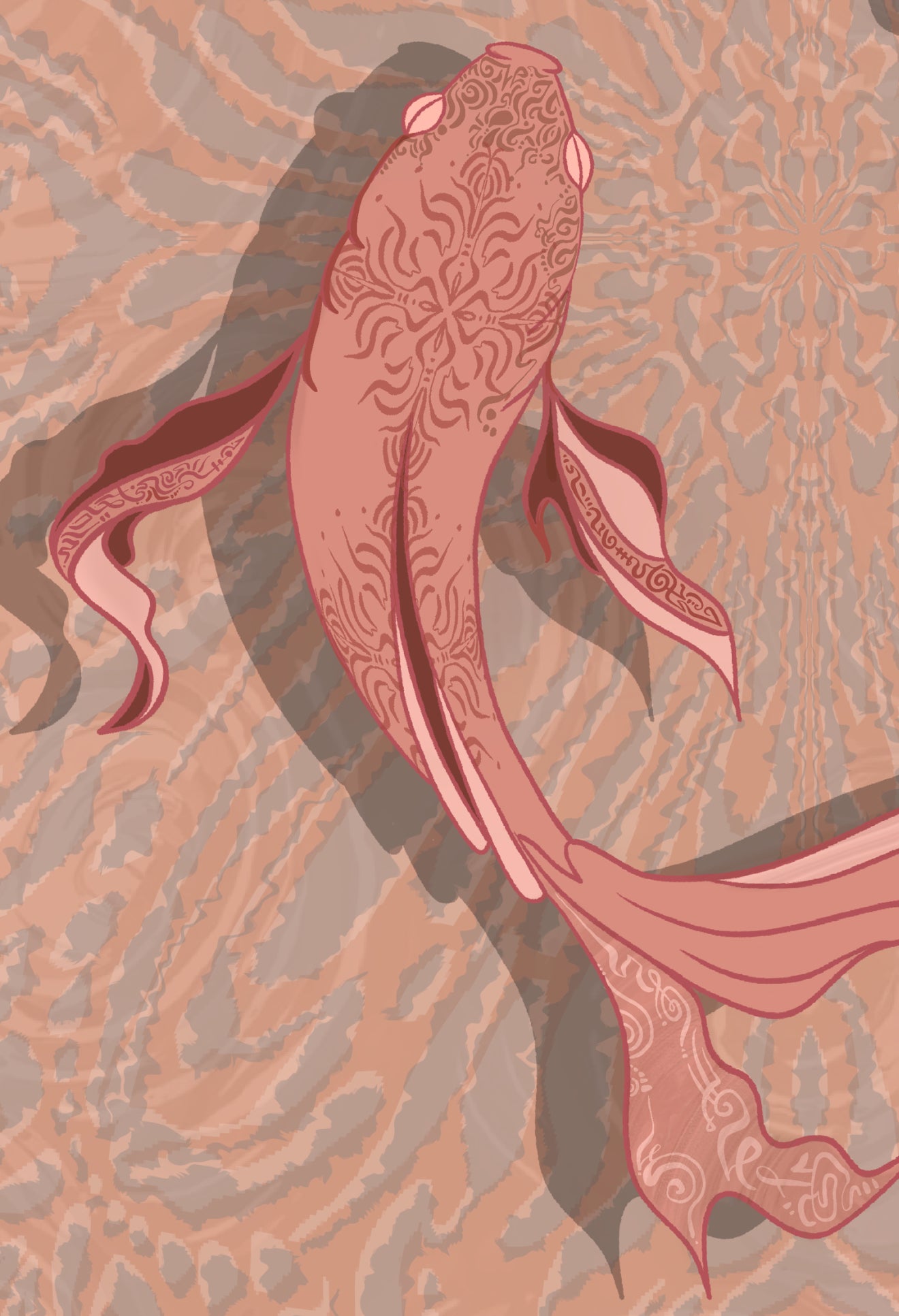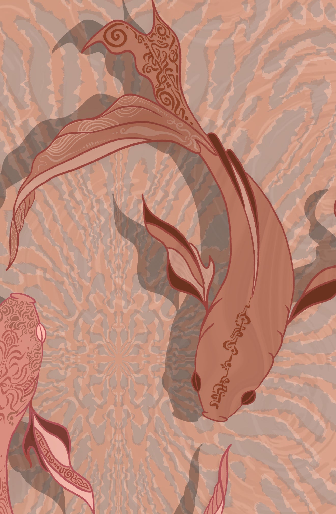 This is a digital design of two koi swim as living mandalas of resilience and grace, circling one another in a dance of balance. They carry the quiet strength of flowing water, teaching us how to move through change without losing our center. Symbols of abundance, perseverance, and harmony, their presence invites a return to trust, reminding us that even in the shifting currents of life, beauty and transformation are always unfolding.