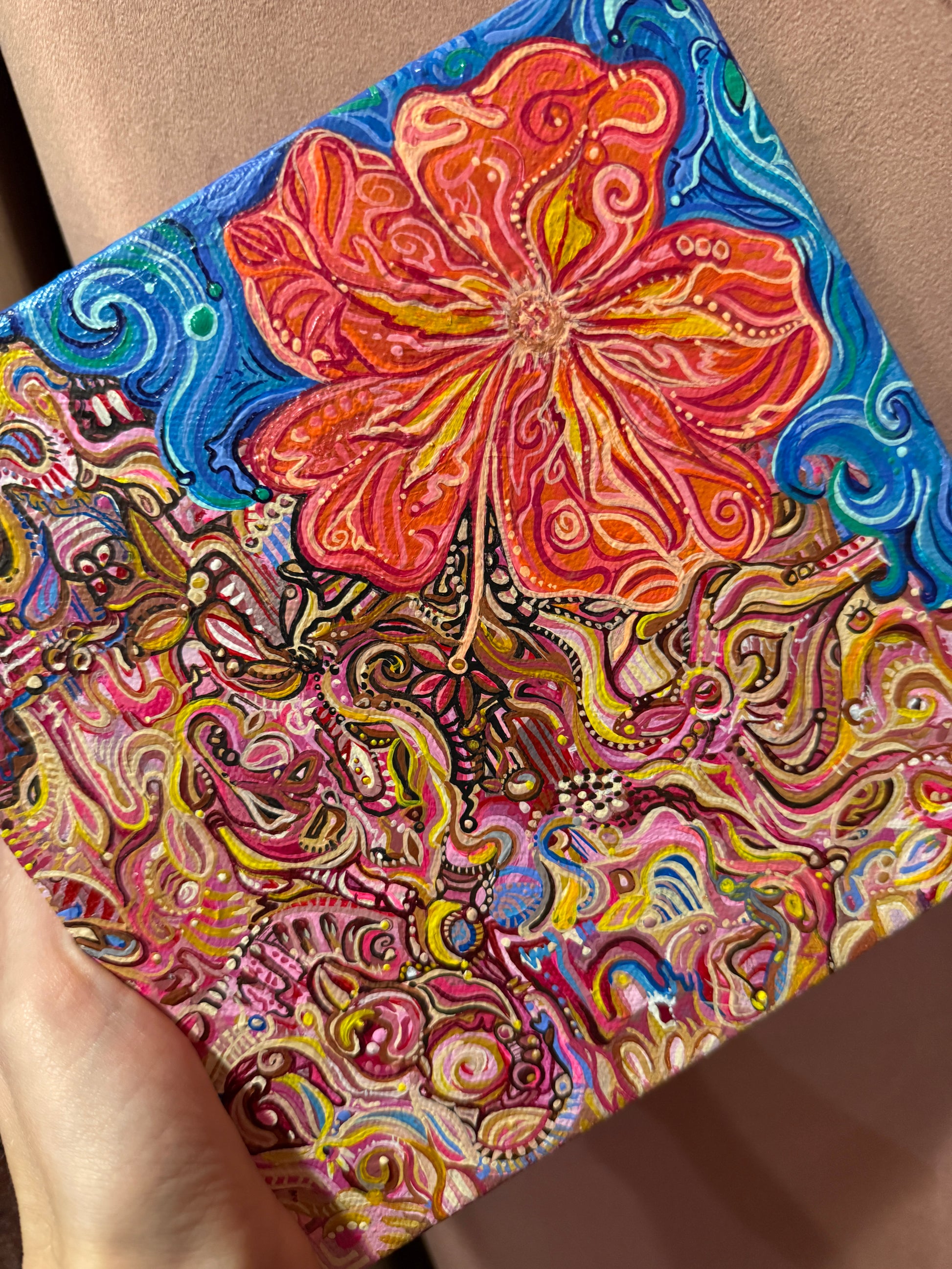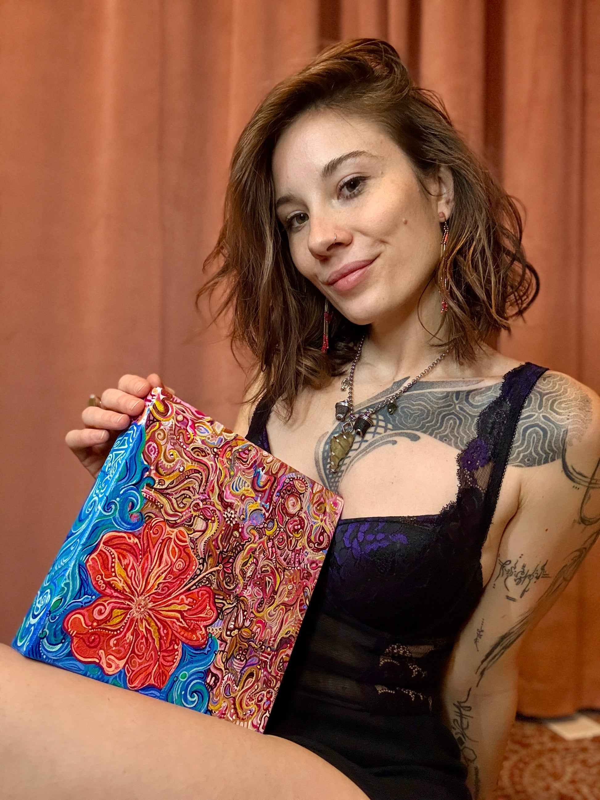 Underneath that ocean and the blooming hibiscus flower was a portrait I started of me and a former lover.