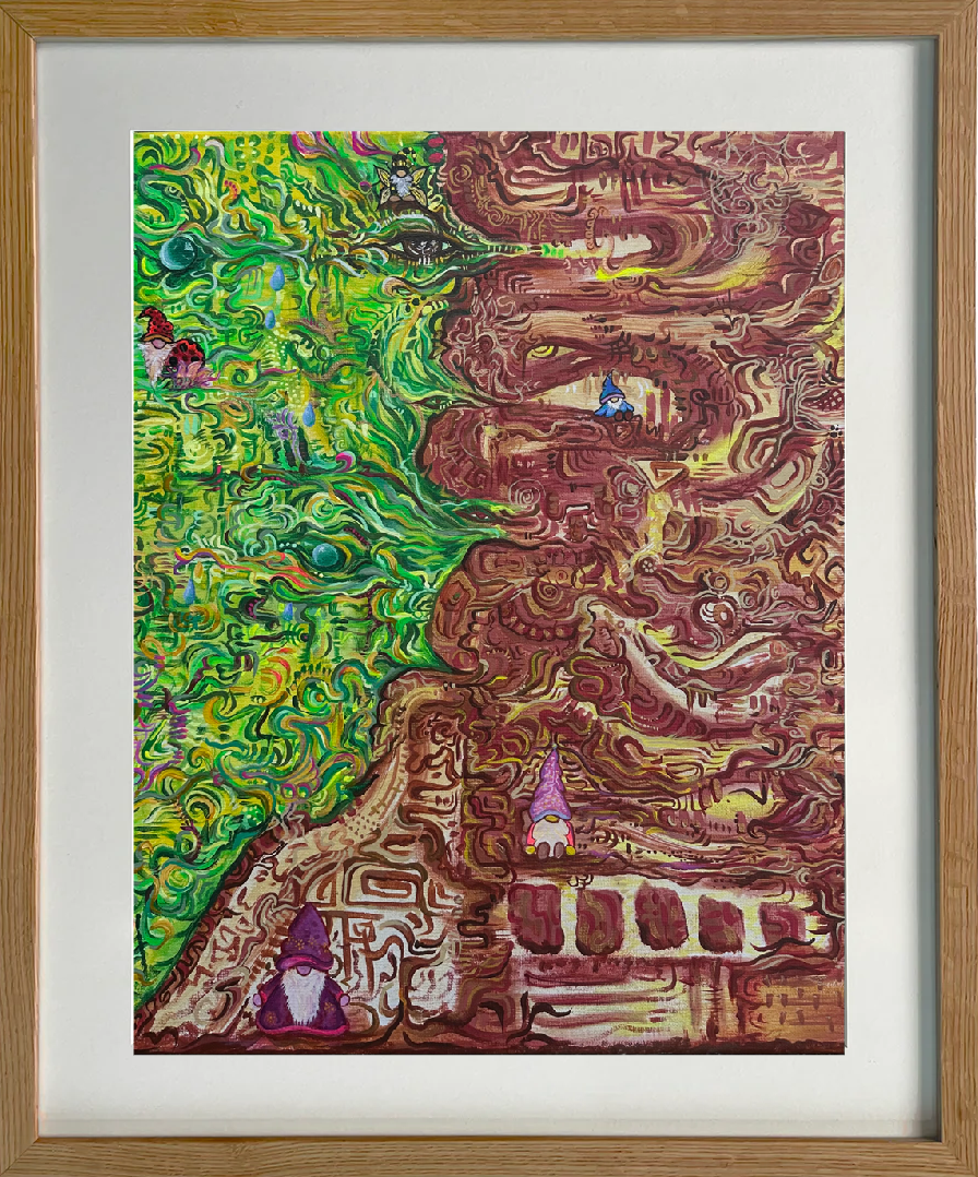 You will receive a 1.5 inch deep, gallery-wrapped & wired lyve canvas, museum-quality archival canvas that brings out the depth, vibrancy, and detail of my work produced as a bespoke collector’s piece. The canvas will be finished with hand-painted custom edges, extending the vision beyond the print and making the piece uniquely yours. Perfect for hanging in your home, studio, or sacred space, it arrives ready to display with no framing required.