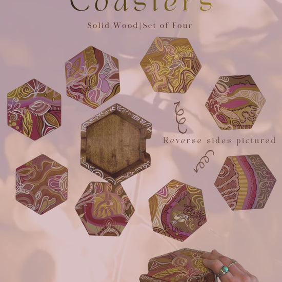 When we place intentional objects in our environment, we are giving our subconscious a cue. It is a simple form of self hypnosis, and it really does shift the way we feel. What we engage with repeatedly becomes what we orient toward. Joy, gratitude, creativity. These coasters are an invitation to infuse your water, tea, coffee, or nightcap with love, presence, and the energy you want more of.