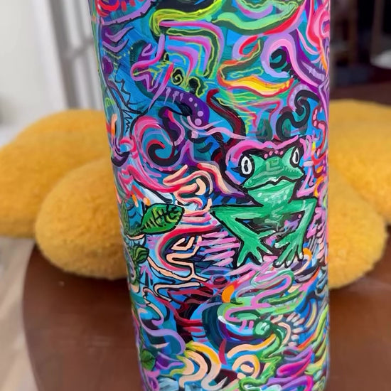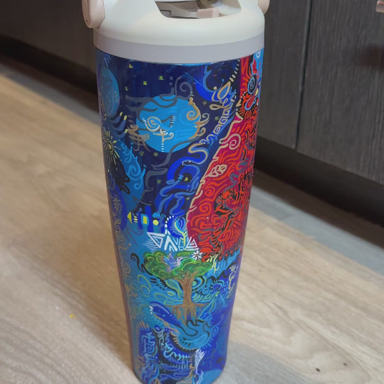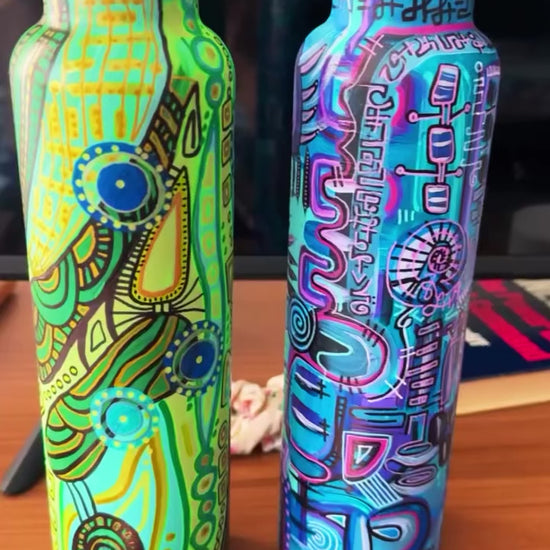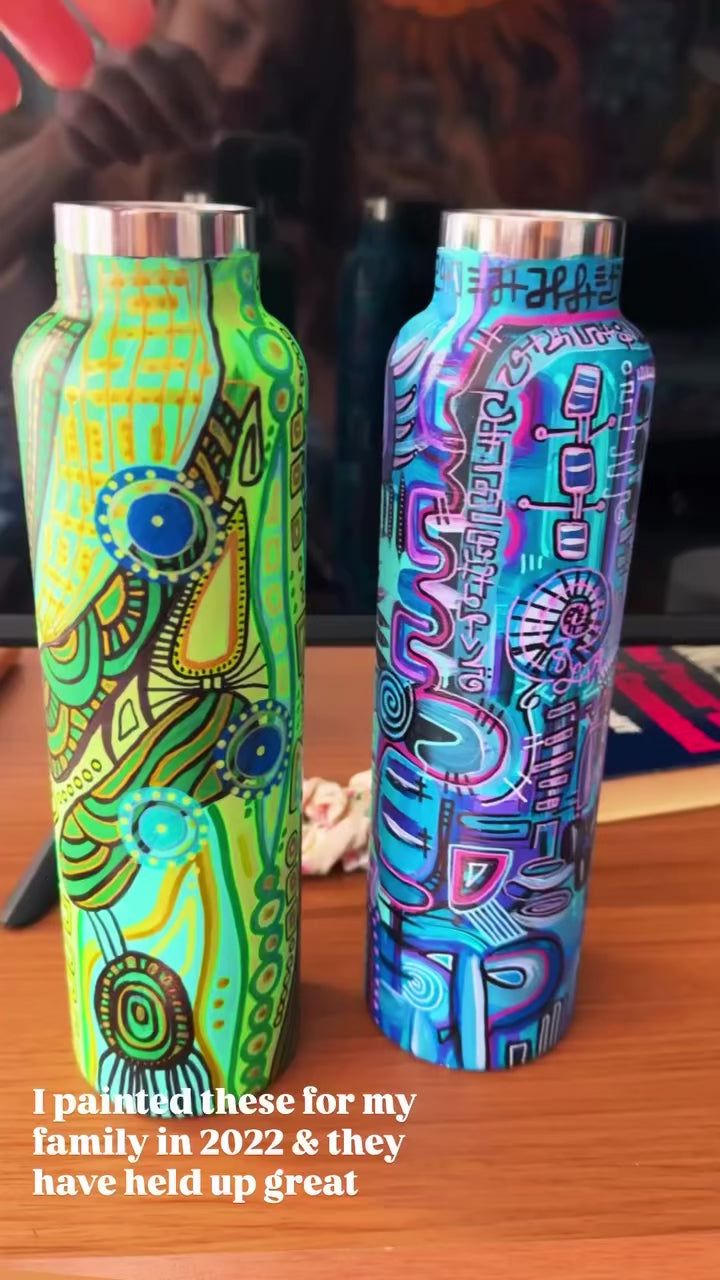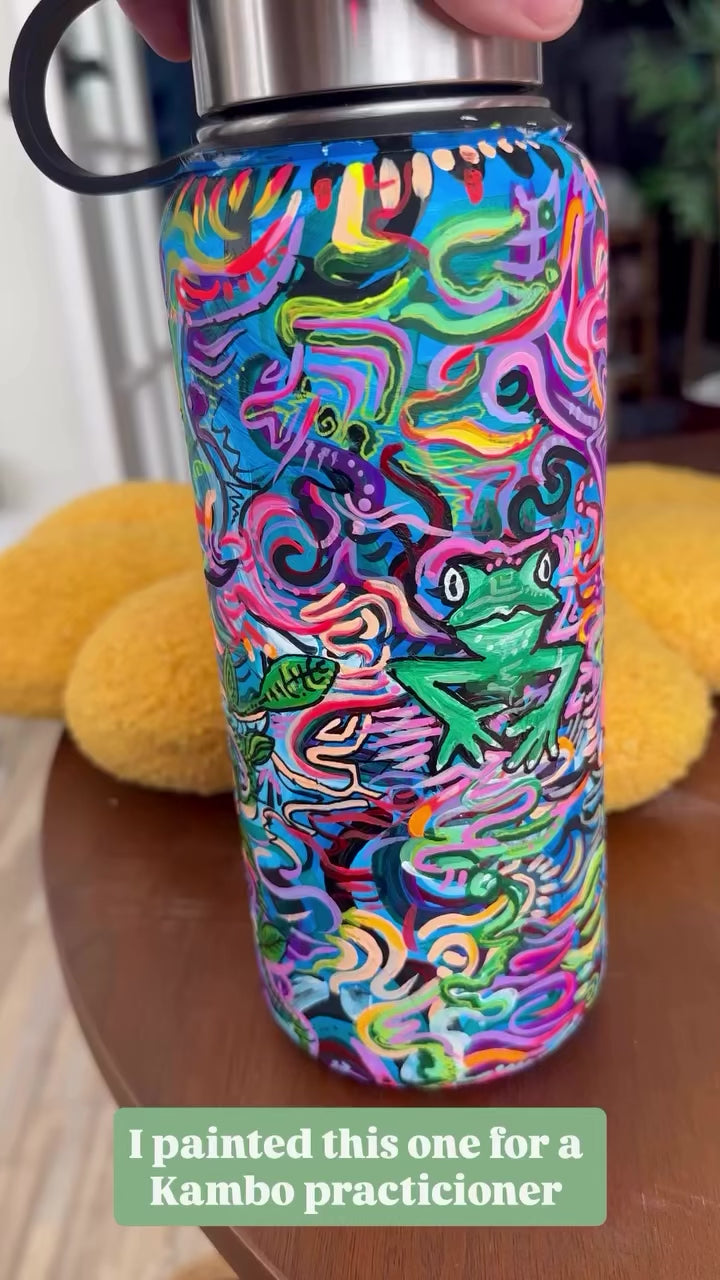 I infuse each bottle with intention while I paint. My hope is that this water bottle serves you as a daily reminder to treat your life like a creative act. When you are reminded that you are holding something a human artist took time to craft, and allow that to register often, your system shifts. It invites you to remember what you’re capable of, get curious about what lives inside your imagination, and serves as a reminder that creativity shapes reality in quiet and powerful ways.