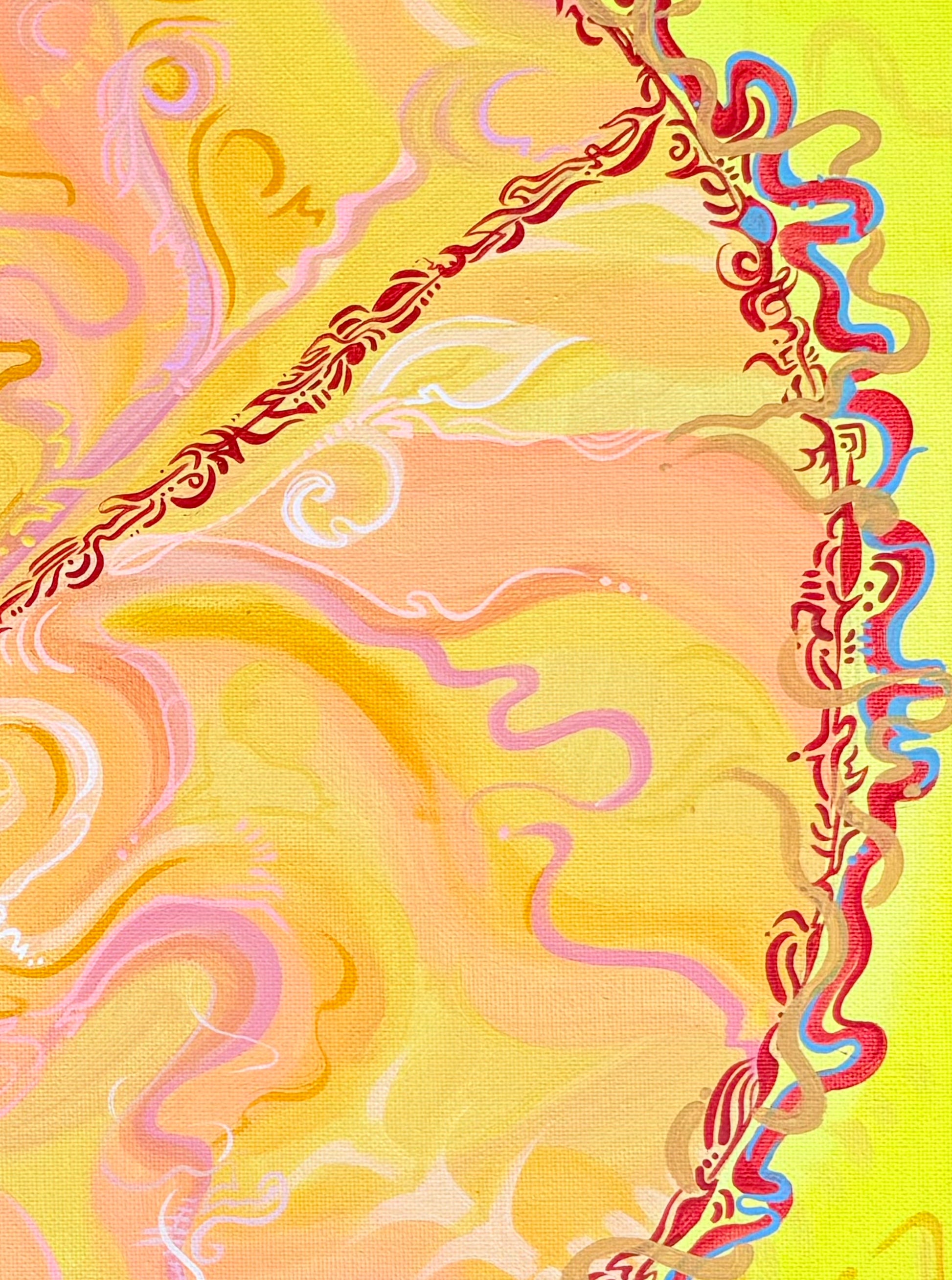 Painting the edges is my way of reminding us that expansion happens when we move past the frame, past the limits of what we think we know. The edges reflect our own process of meeting ourselves beyond comfort zones, in the places where growth, change, and possibility live.
