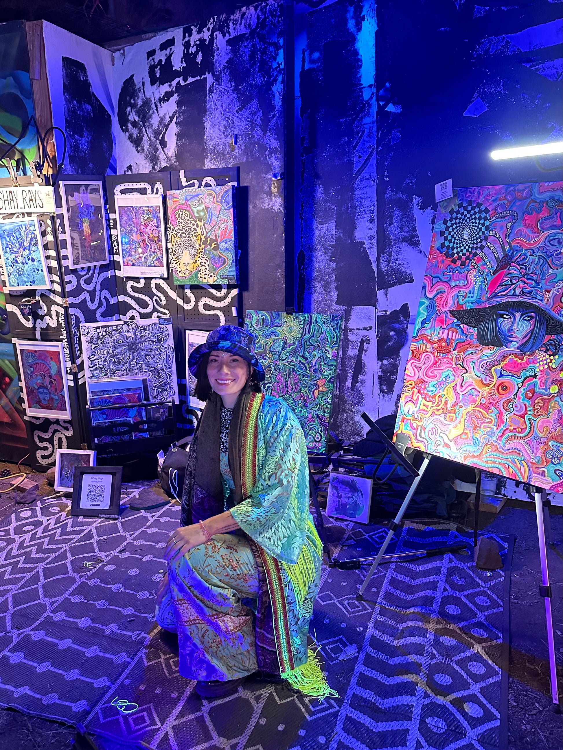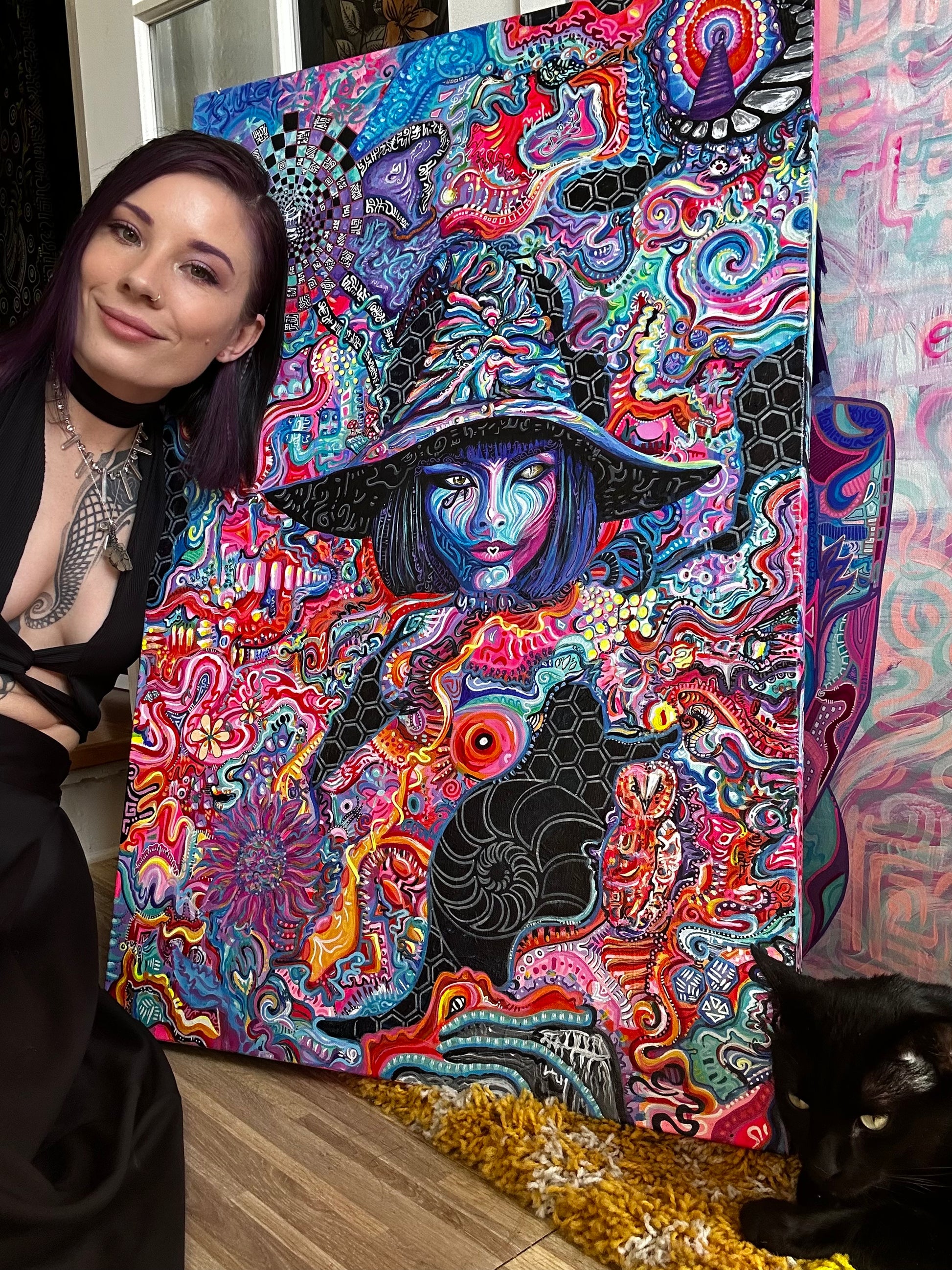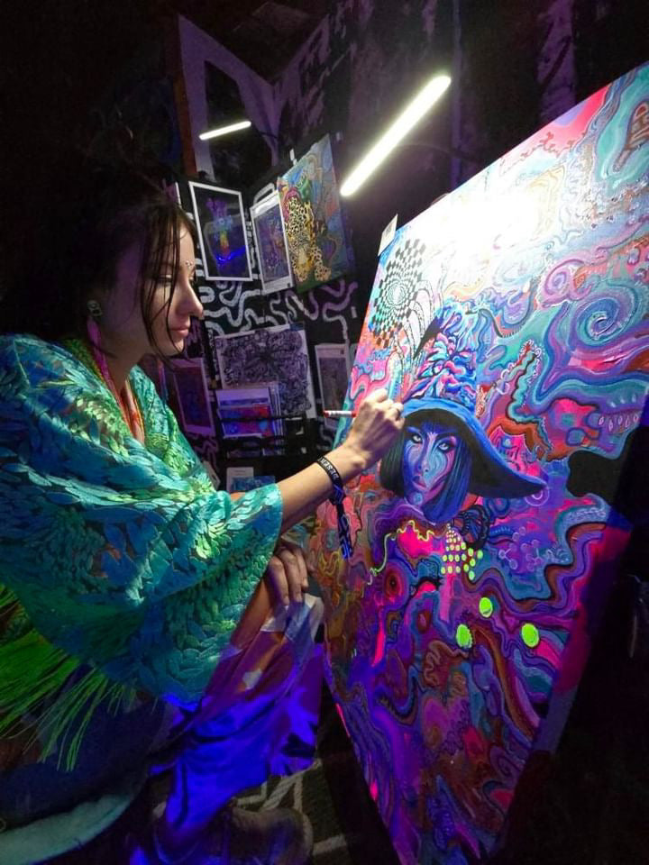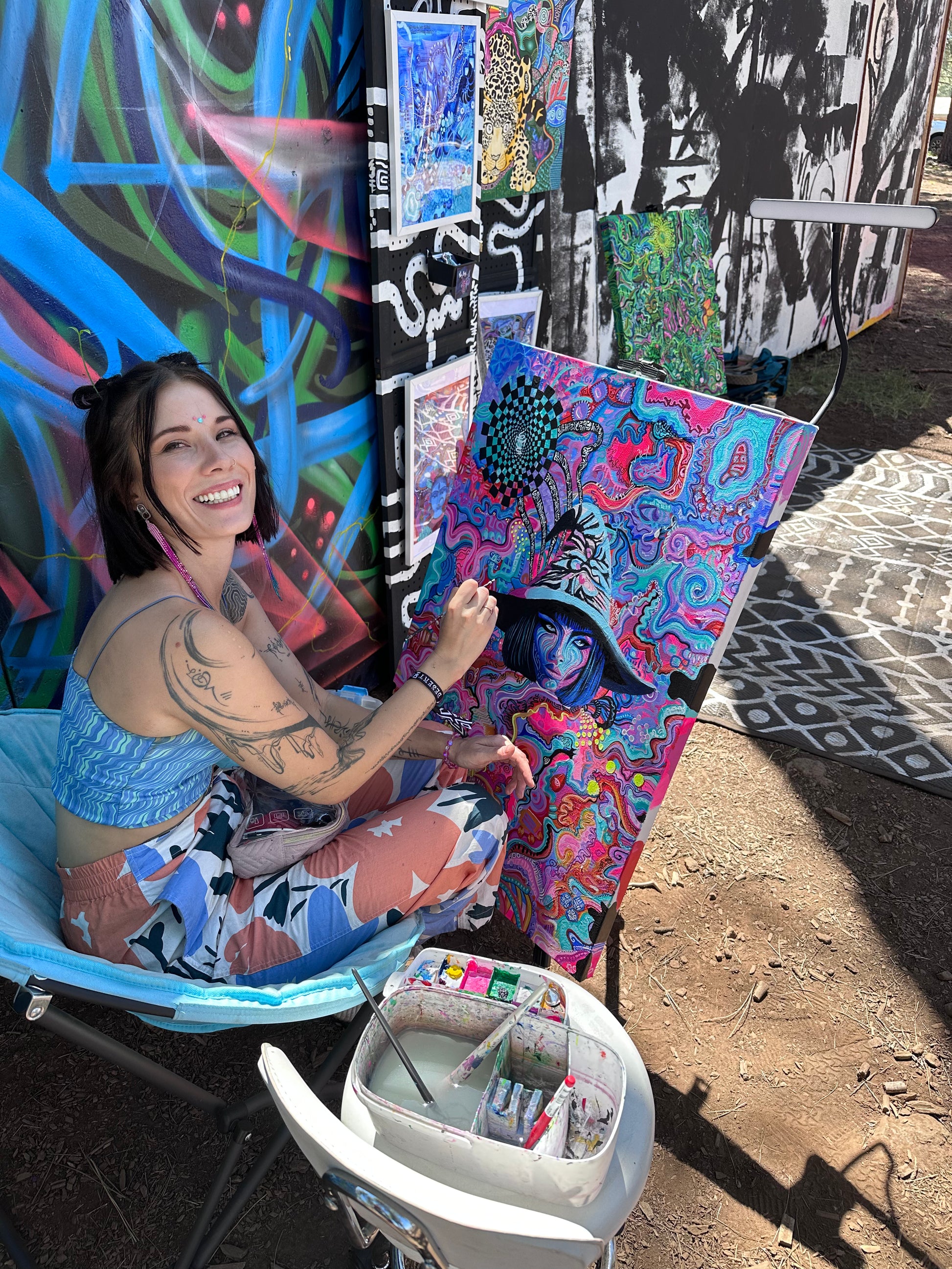 Festivals became my modern temples. Painting live within them felt like tending an altar & each dance sequence or brushstroke a prayer woven into the collective field. Just as I ventured out to take up physical space and share my creations with the world, the witch within me required courage to exist openly in my magic in a world where that expression has been suppressed and could mean death.