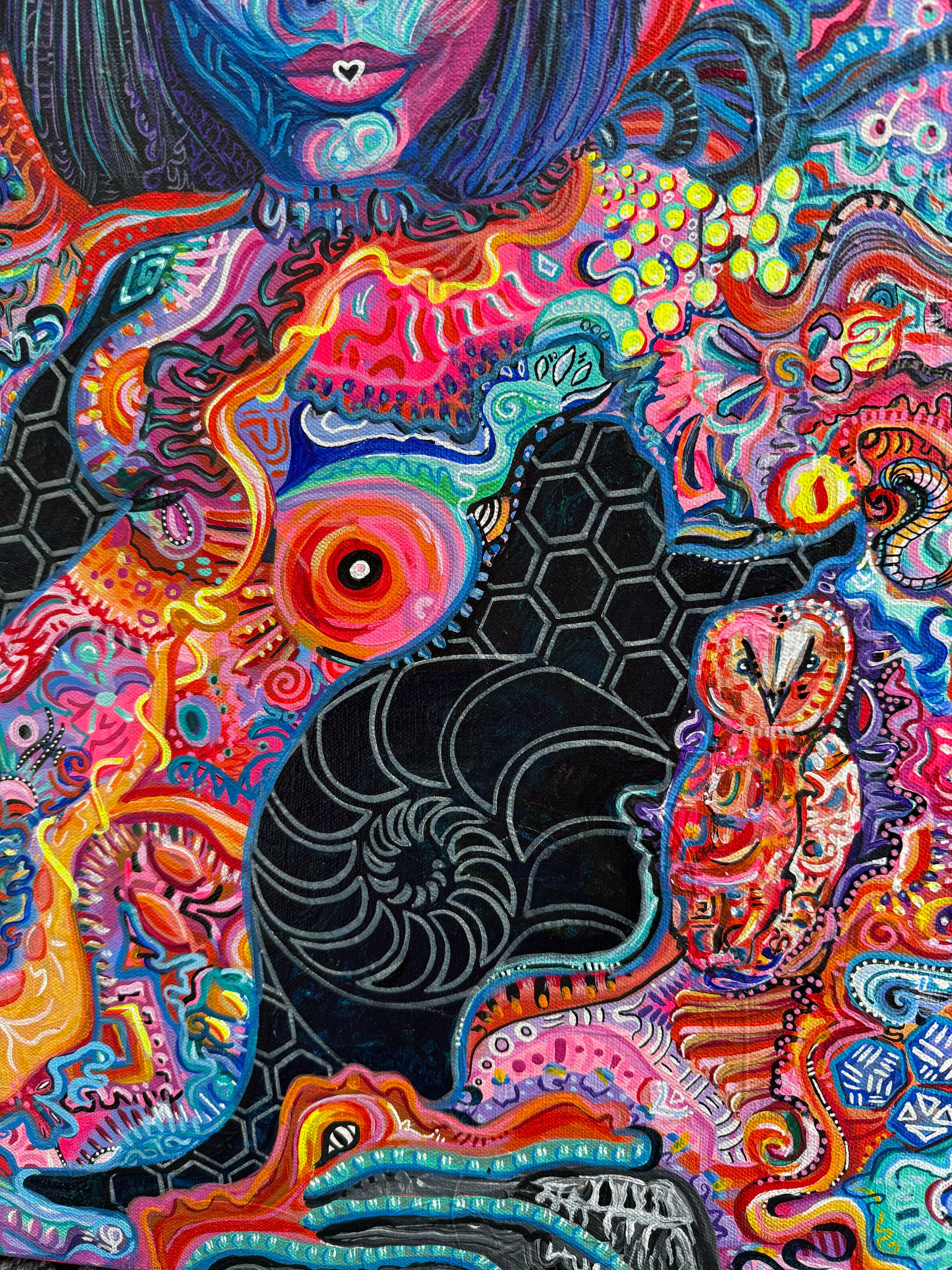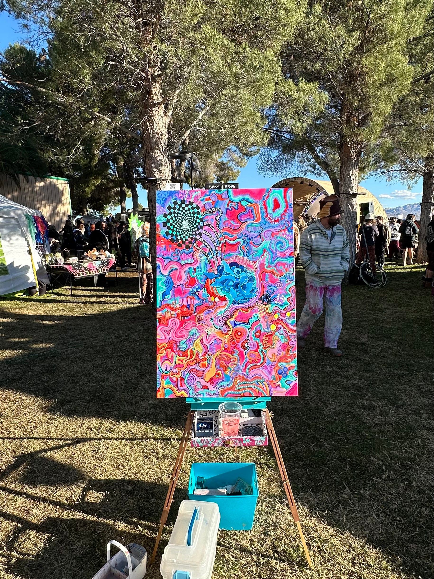 This piece was birthed as I dabbled in my first few larger festival painting experiences. I began it at Gem & Jam in Tucson and completed it at Desert Hearts in Flagstaff.