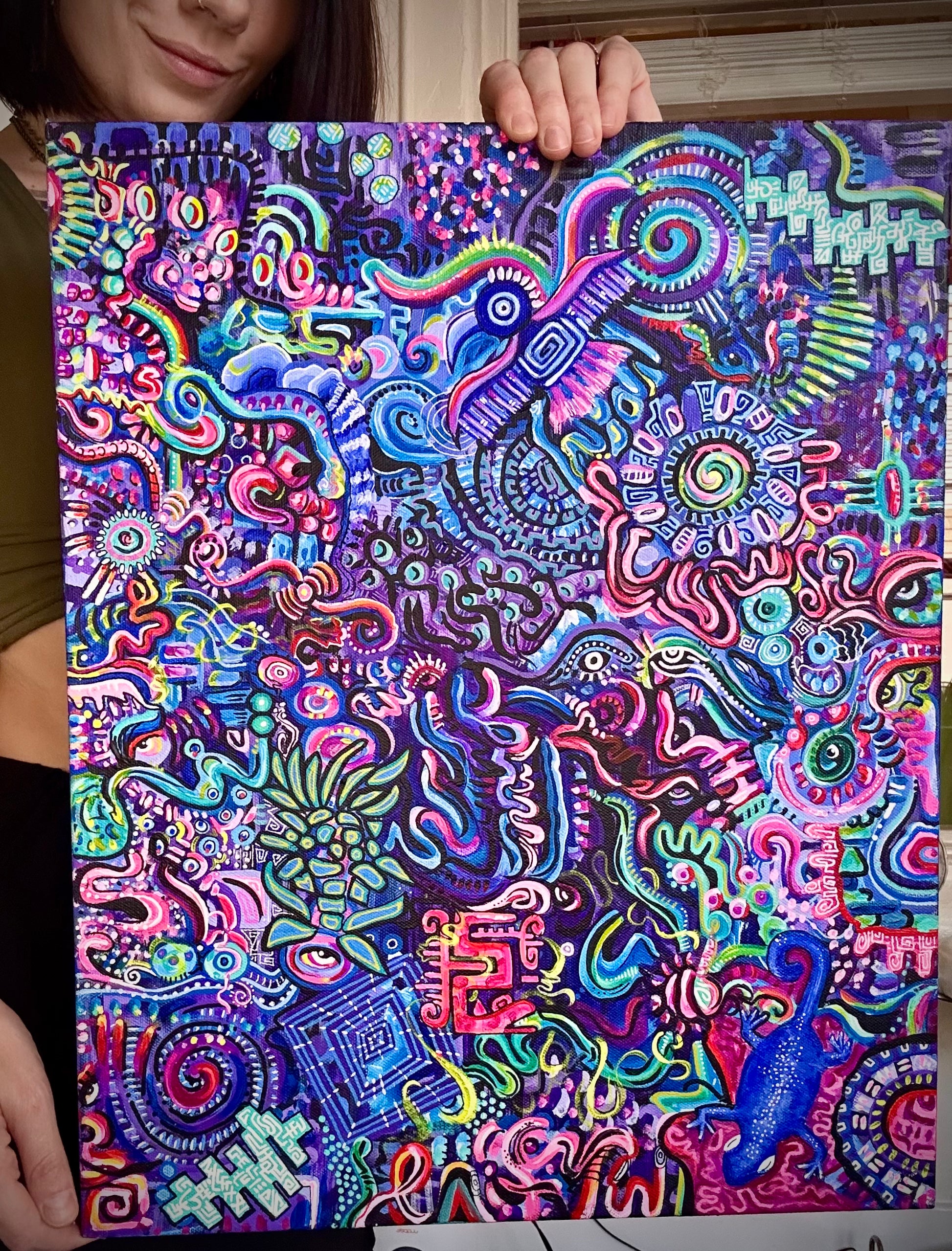 You will receive aĀ 1.5 inch deep, gallery-wrapped & wired lyve canvasĀ that brings out the depth, vibrancy, and detail of my workĀ produced as a bespoke collectorās piece. The canvas will be finished with hand-painted custom edges, extending the vision beyond the print and making the piece uniquely yours. Ā Perfect for hanging in your home, studio, or sacred space, it arrives ready to display with no framing required.
